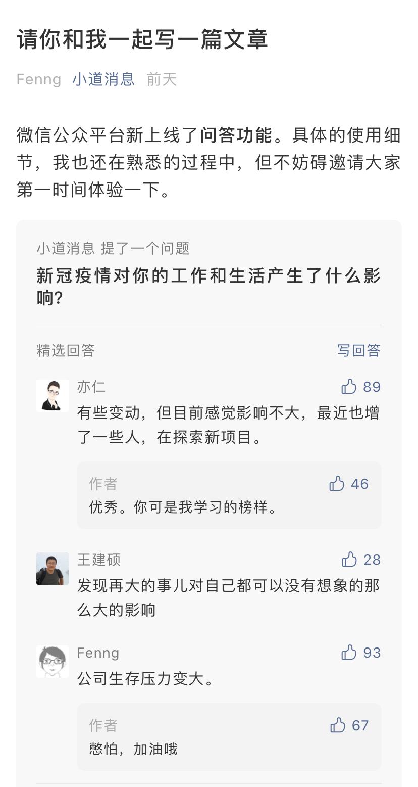 不过,也有从业者认为,如果在文章中插入“问答”,用户可能互动完就离开了,不会阅读到文章底部,这会影响“点赞”、“分享”、“在看”的数据。