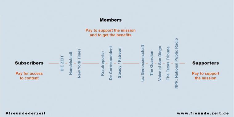 简单来说,这个项目的精髓在于将其最忠实的读者看作是朋友。借助定期举办的活动,记者们可以直接向读者们讲述报道背后的故事,读者们也可以定期访问新闻编辑室、参加读者议会,讨论那些他们自己认为具备新闻价值的话题。如此,读者和记者编辑得以相互了解,并围绕高质量的新闻报道和《时代周报》的未来进行讨论。
