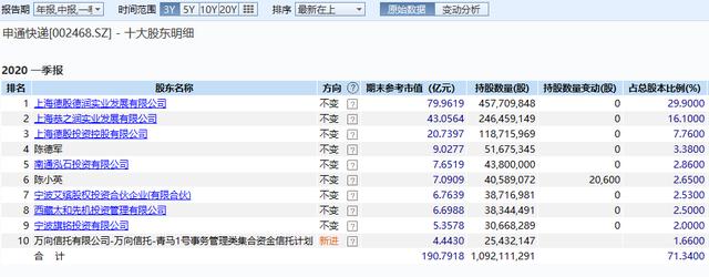 不过阿里入股申通的情况更加复杂,据Wind数据显示,申通快递最大股东还是董事长陈德军。