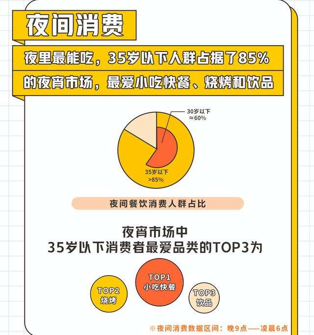 就连《2020周末餐饮堂食消费趋势洞察》报告也显示,35岁以下人群占据了85%的夜宵市场。
