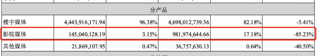 大量传媒公司在影院的广告业务严重下滑,分众传媒在院线的广告收入仅有1.45亿元,而去年同期的营收为9.82亿元,缩减超过85%,实在是“惨不忍睹”。
