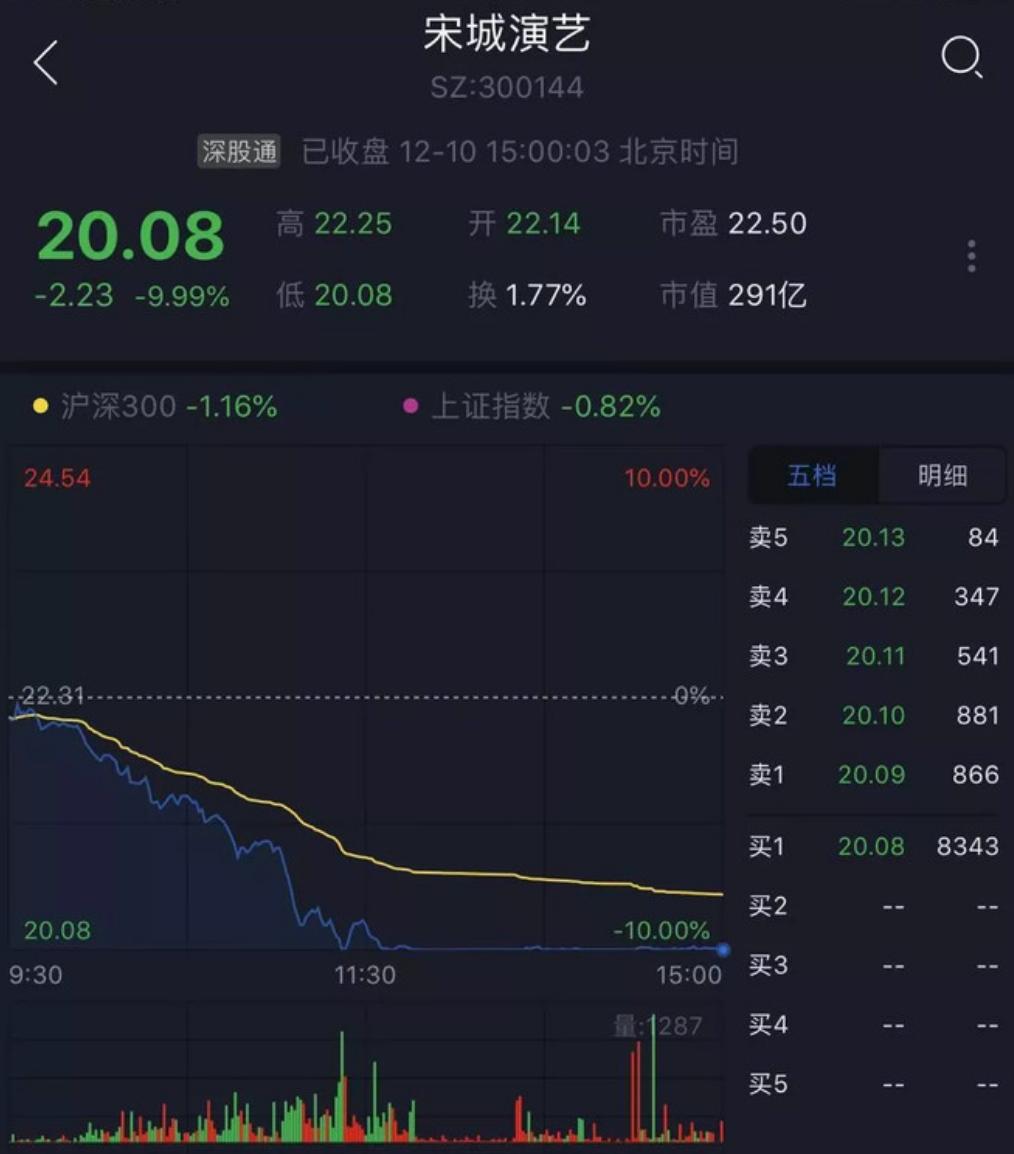 考虑到不利的行业环境,一些对资本市场感兴趣的演艺公司不得不暂时搁置上市计划,已经上市的企业也受到了较大冲击。8月7日,宋城演艺发布了2020年半年度报告,上半年收入2.83亿,同比减少80%;净利润仅约3985万,同比减少94.92%。8月11日,宋城演艺实控人黄巧灵等减持股份至50%以下,翌日,股价跌停。