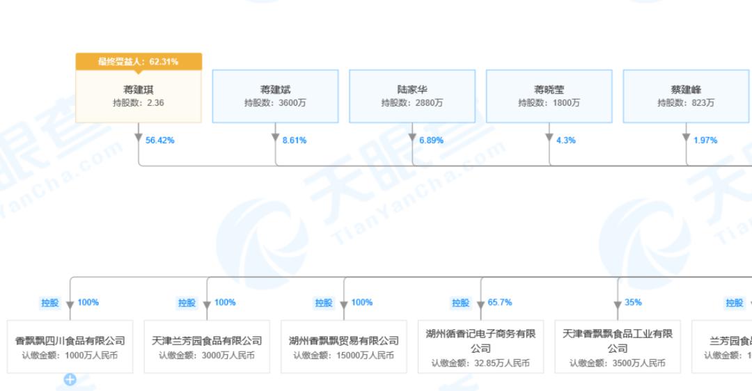 天眼查股权结构图显示,蒋建琪持有56.42%的股权,蒋建斌持有公司8.61%股权。
