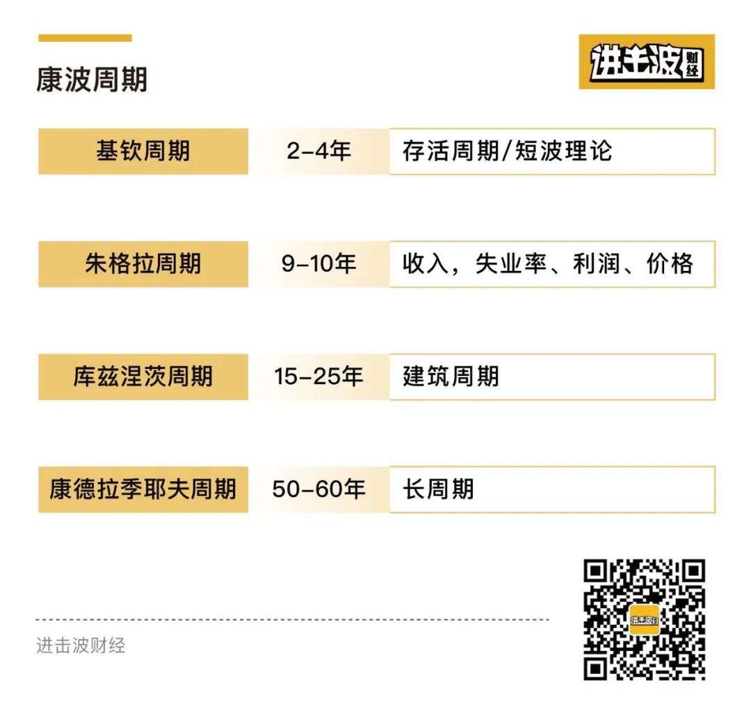 第二个重要的周期叫朱格拉周期。朱格拉周期在9~10年间,这是一个跟收入、失业率、利润和价格高度相关的周期。