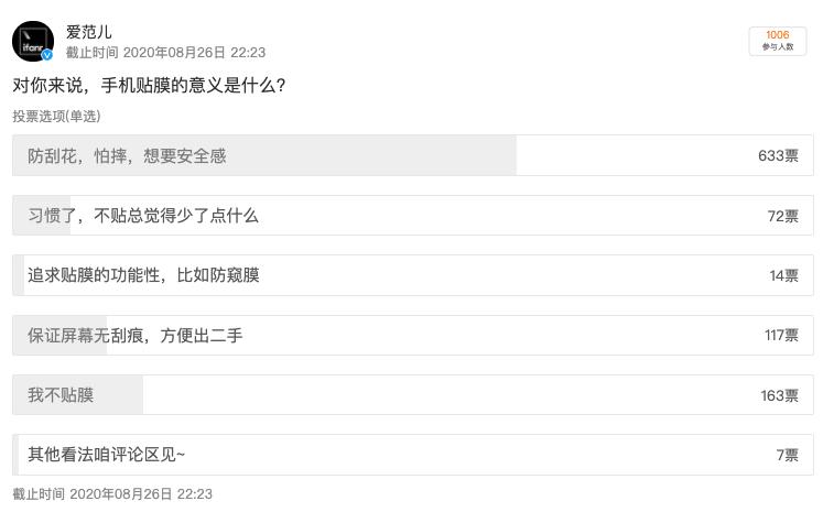 还有一小部分人是受习惯影响,「从买第一台智能手机,我就开始贴膜,已经成为一种习惯了,你要是不让我贴,我就感觉手机是不完整的」。有人表示。