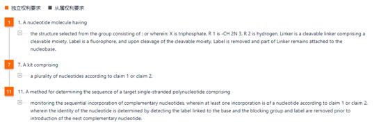 基于这样的生物学常识,可以判断,这件“用于多核甘酸定序的修饰的核苷酸”专利的权利要求,覆盖的正是基于核苷酸测定及标记技术的基因翻译、定序原理及流程方法,同时涉及相关试剂的配套生产。