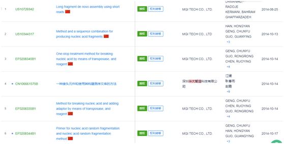 截至目前,华大智造拥有的与基因测序技术及试剂相关的授权发明专利不少于32件,其早期核心专利来自于CG公司,包括“一种核酸片段化方法和序列组合”“一种核酸的转座酶打断一站式处理方法及试剂”“一种核酸单链环状文库的构建方法和试剂”等,基本覆盖欧美及中国等主要市场。