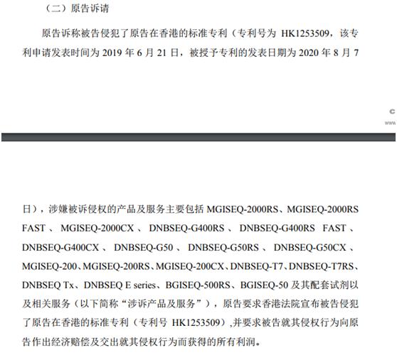 而根据Illumina向香港高等法院提出的诉请可知,该项专利几乎涉及华大基因即华大智造全部测序仪产品,并据此求后两者就其侵权行为作出经济赔偿及交出就其侵权行为而获得的所有利润。
