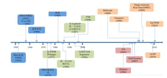 图2:测序技术的发展历程。来源:《一代、二代、三代测序技术原理与比较》