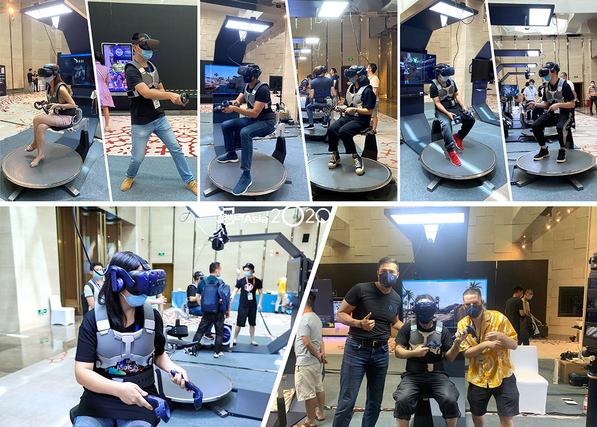 目前梦神科技以B端用户为主,定制的VR商用内容会有各式各样的需求,比如开车的模拟、飞行的模拟、太空漫游、滑雪模拟等等,那就需要一种标准人机移动机制去覆盖所有的移动特性,还要符合项目二期升级开发之后仍然可以持续的通用,所以设计的产品要去覆盖全移动机制,操作方式像是把自己的身体变为【遥控】去进行移动,不论你是跑步、游泳、开车都操控自然毫无违和感;