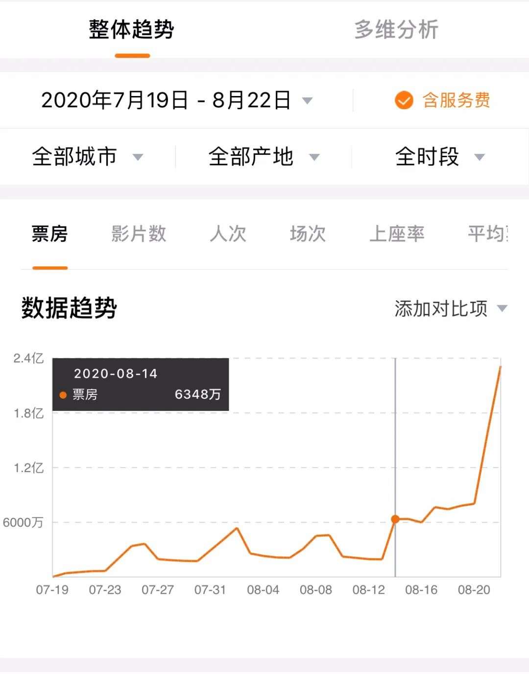 刚刚过去的这个周末,三天累计票房6.43亿、观影人次1631万,票房和观影人次纷纷恢复到了去年同期暑期档的水平(2019年8月21-8月23日:票房5.7亿、观影人次1643万)。