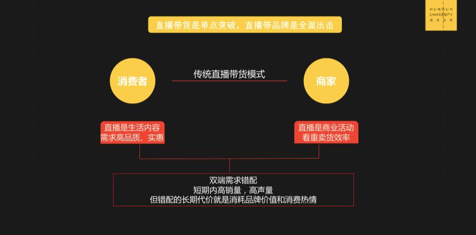 我们来看这张图,在消费者这端,直播是生活内容,需求高品质、实惠;商家这端,直播时商业活动,看重卖货效率。这两端需求错配,短期内可以带来高销量,高声量,但是错配的长期代价就是消耗品牌价值和消费热情。