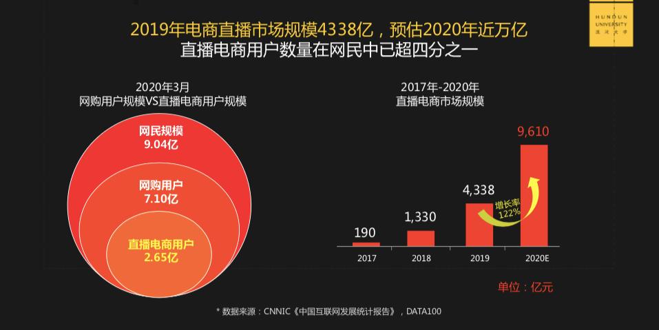 2020年3月直播电商用户数量在网民中已超四分之一:直播电商用户有2.65亿人,网购用户有7.1亿人,网民规模有9亿人;