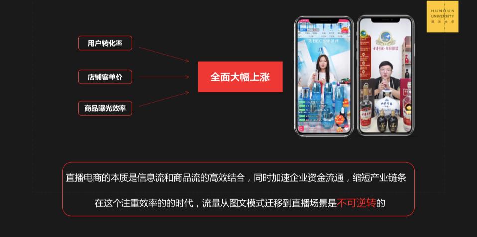 直播电商的本质是信息流和商品流的高效结合,同时加速企业资金流通,缩短产业链条。在这个注重效率的时代,流量从图文模式迁移到直播场景是不可逆的。