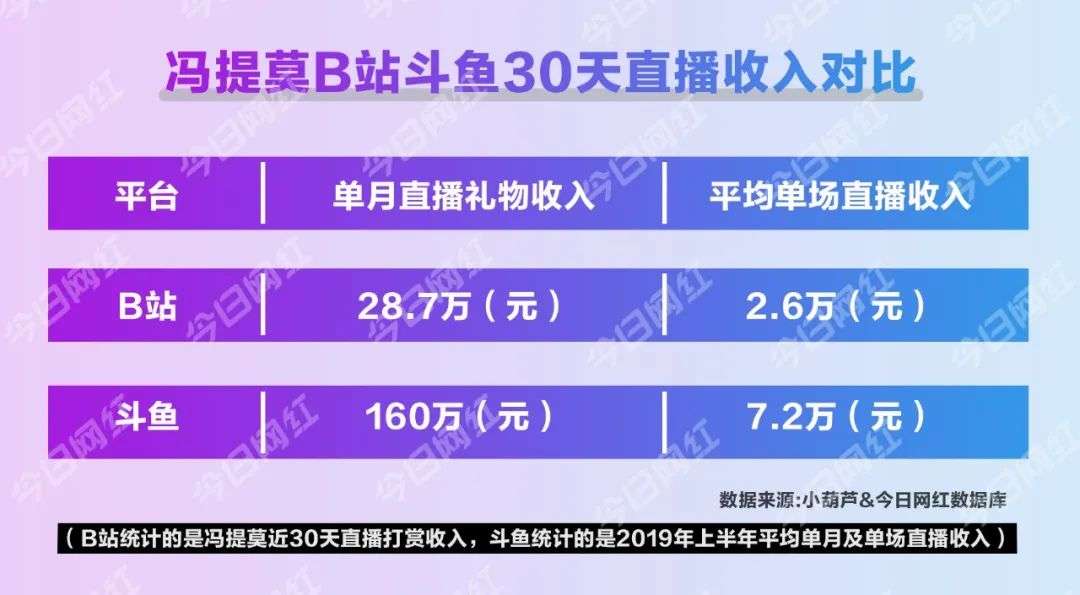 8个月前,与斗鱼合约到期的冯提莫,跳槽到了B站。据传B站出了天价签约费,远超抖音斗鱼。