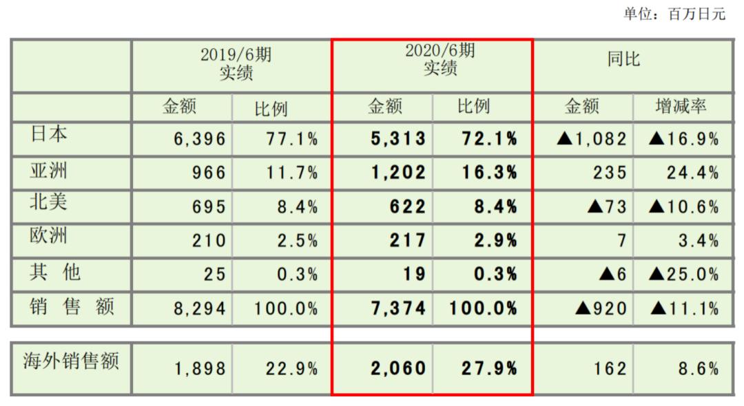 国内的销售额几乎减半,商业设施的临时休业和短时营业带来的影响巨大,事业缺乏多样性同样有着深刻影响。