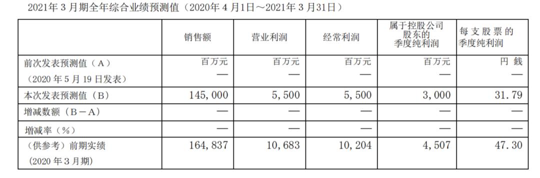 2020财年受疫情扩大的影响,虽然公司的收入和利润都减少了,但是超过了当初业绩预测的收入和利润。特别是在收益方面,远远超过了业绩预测值。