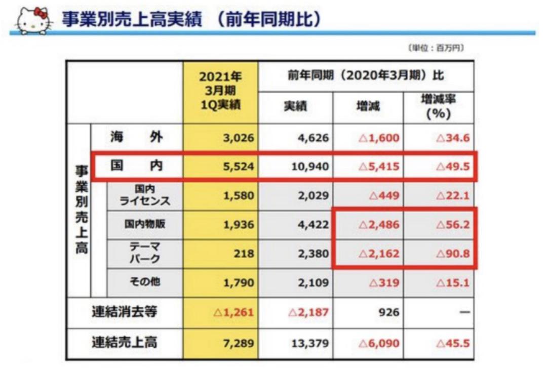 三丽鸥于2020年8月4日发表2021财年第一季度(2020.4.1-2020.6.30)决算数据。受新型冠状病毒感染扩大的影响,经营状况急速恶化,第一季度的经营成绩呈现出非常严峻的形势。