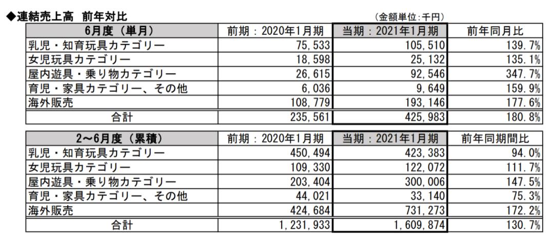 2020年7月31日,婴幼儿玩具制造商People株式会社公布了2021财年第6季度(2020.5.21-2020.6.22)的决算数据。