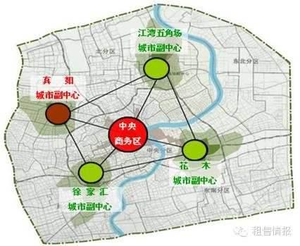 上海围绕着中环布置了4个副中心,达到城市均衡发展的目的