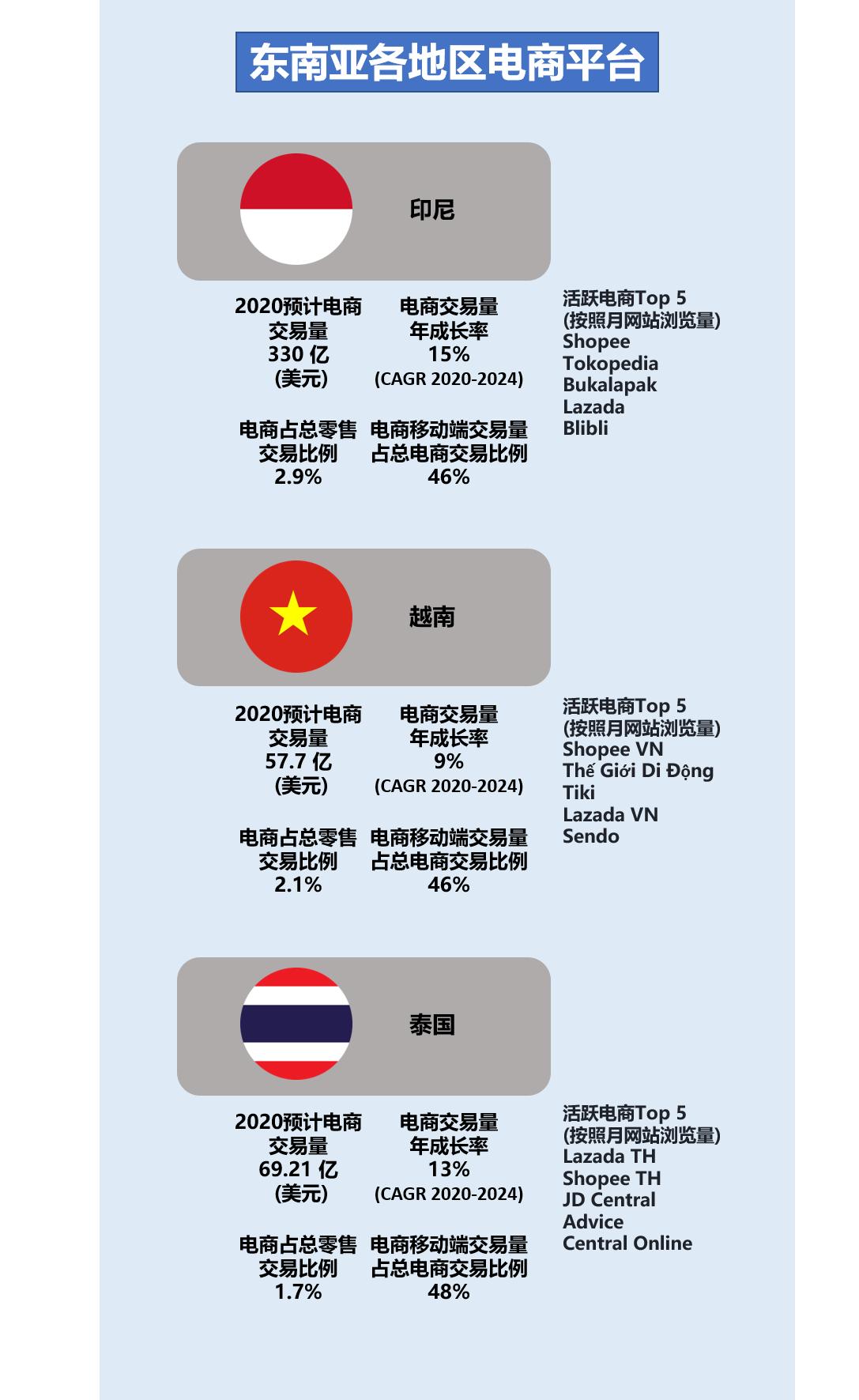 东南亚各地区的电商表现