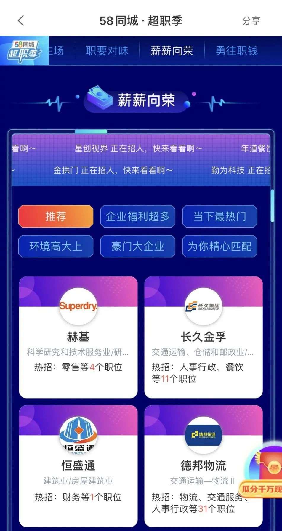 顶流内容、超级平台、优质雇主与金牌IP的强强联合之下,第二季58同城超值季的招聘效果远超预期。