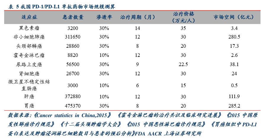 我国PD-1/PD-L1单抗药物市场规模测算