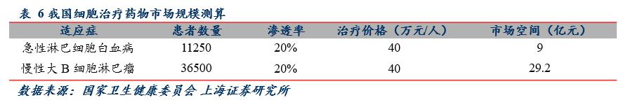 我国细胞治疗药物市场规模测算