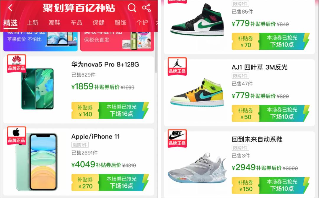 至于京东的百亿补贴,就没什么类目区分了。