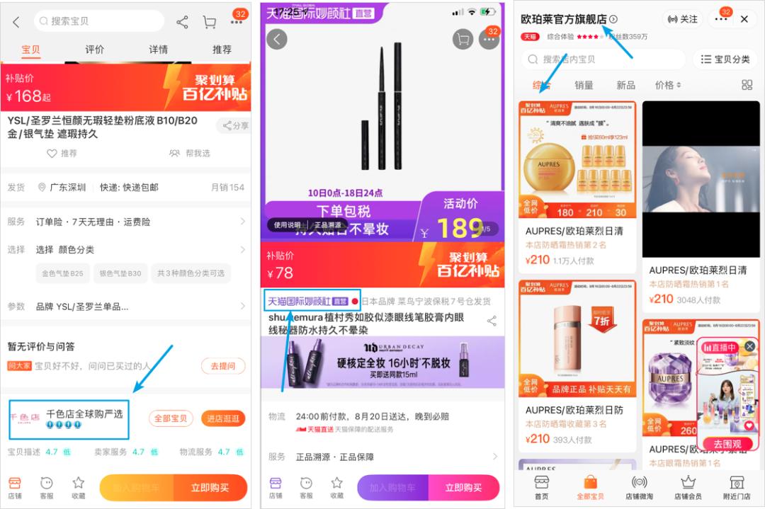 聚划算的百亿补贴商家也比较杂,既有品牌天猫旗舰店、自营旗舰店,也有卖场型的天猫店,还有大量淘宝店。