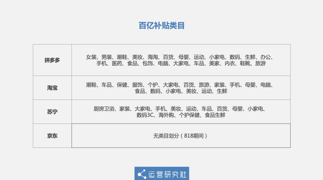 综上,我们把 4 大平台现阶段的百亿补贴活动简单总结如下: