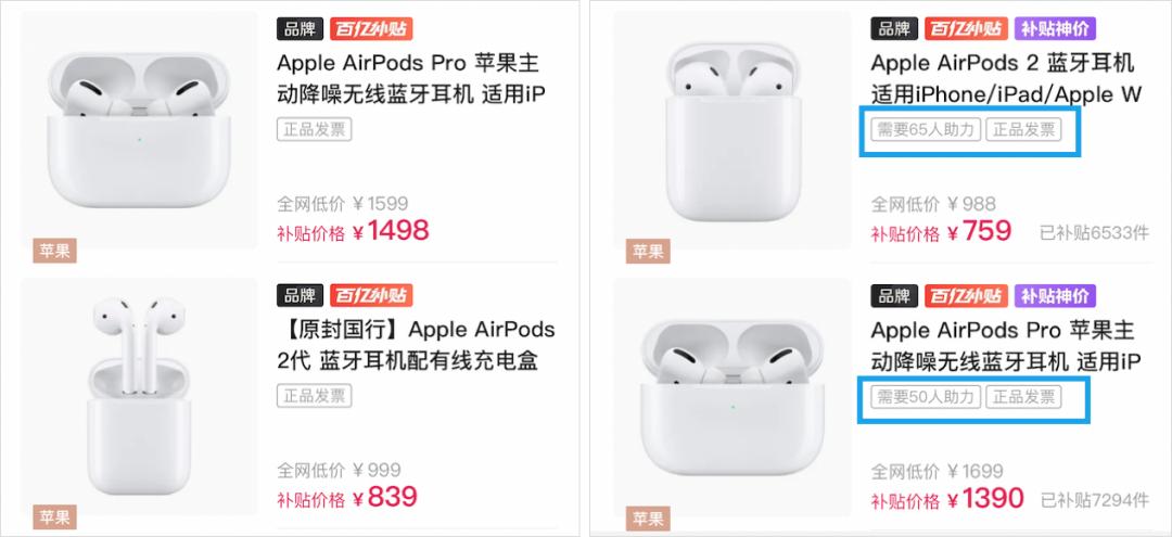 在此基础上,拼多多还有“补贴神价”的玩法,部分商品会有更便宜的价格,但是需要拉几十个人助力,就不多说了。
