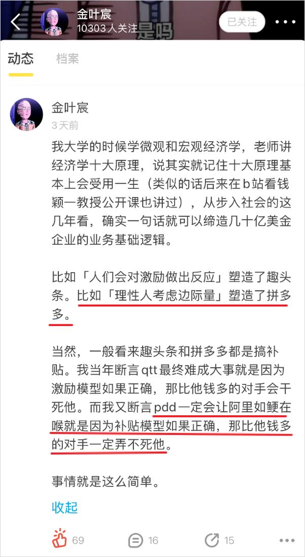 「理性人考虑边际量」塑造了拼多多……拼多多一定会让阿里如鲠在喉,就是因为如果补贴模型正确,那比他钱多的对手一定弄不死他。