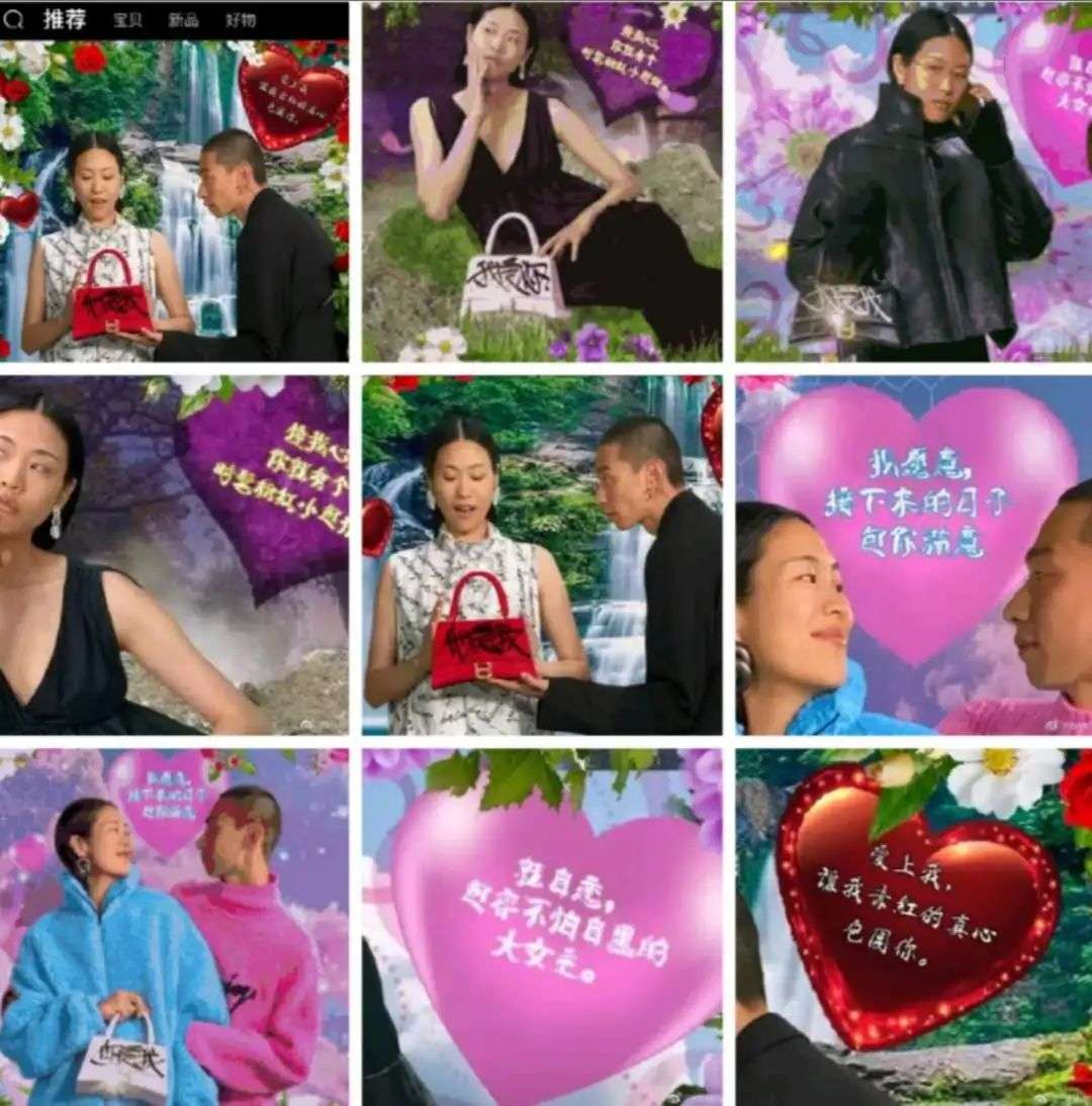 借助一系列土到匪夷所思宛如中老年玩梗表情包的宣传图,巴黎世家的七夕广告成功火出了圈。品牌官方宣传发布两天后,#巴黎世家七夕广告 土#登上热搜,享受了一把国民关注,国民嘲讽的待遇,遭到的差评力压此前的Dior“拼夕夕”广告,一跃成为近三年的土味之王。