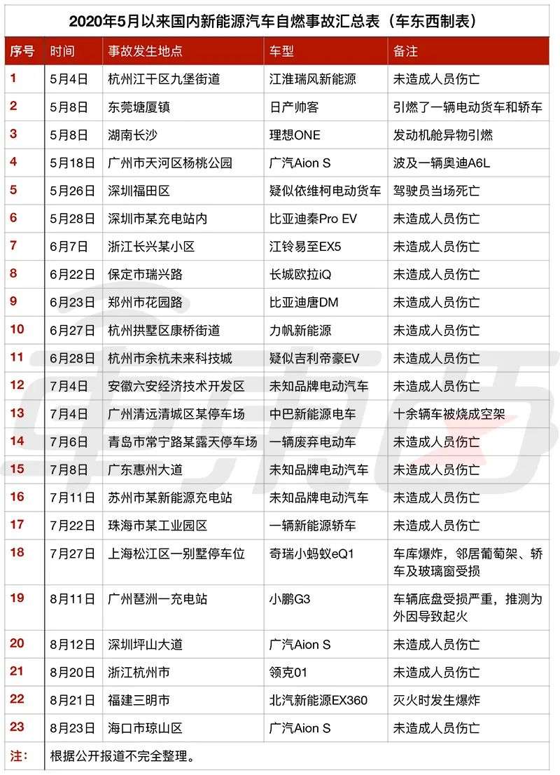 进入夏季之后,天气炎热,新能源汽车自燃事件时有发生。据车东西不完全统计,自今年5月以来,国内已至少发生23起新能源车自燃事故。