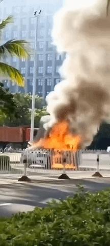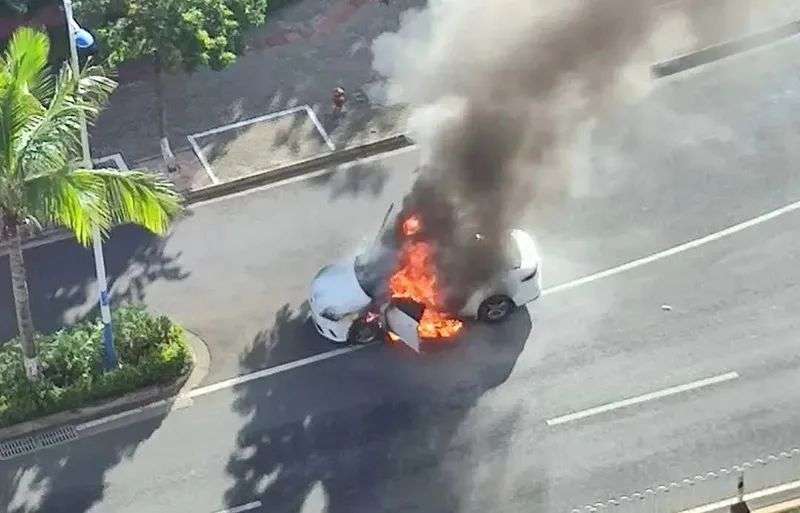 据车主向当地媒体介绍,事发时,车主正在驾驶车辆从椰海大道左转驶上椰博路,行驶至椰博路与椰合一街交叉路口时,车辆底盘发出“砰”的声音后,仪表板显示车辆发生故障。随后车辆开始冒烟并起火。