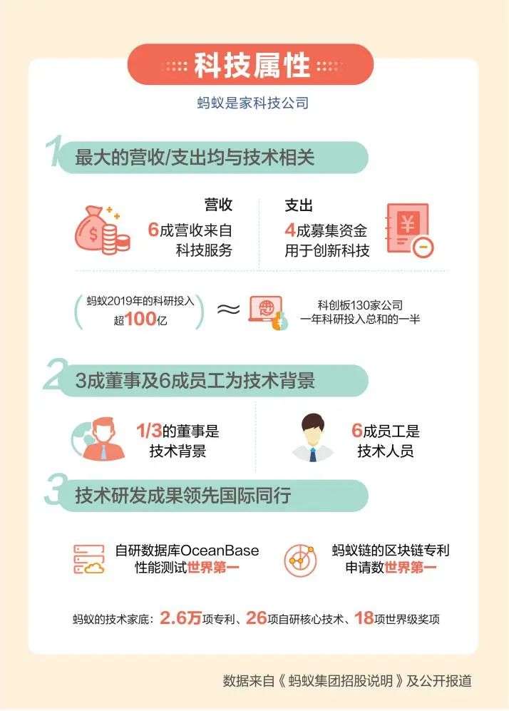 蚂蚁IPO拟募集资金的主要投向之一也是技术,招股文件称,A股和H股募资额的40%都将投向创新及技术研发。而在蚂蚁的员工构成上,也有64%是技术人员。