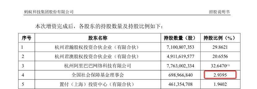 蚂蚁招股文件:社保基金为最大外部股东,收益翻5倍