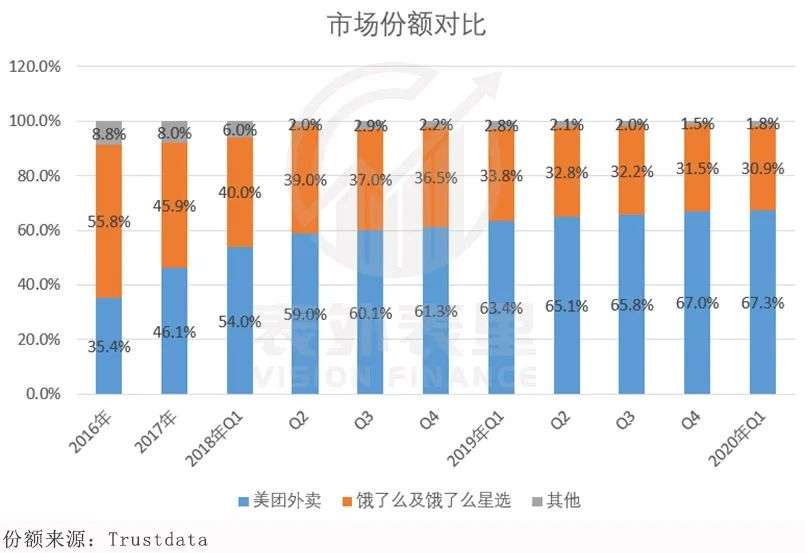 而实现用户习惯培养的美团,竞争优势凸显,在用户这一块也有了一定的话语权。