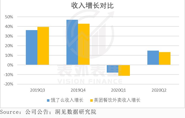 首先,从收入增长方面可以看到,饿了么的收入增速,从2019Q4开始,一直是优于美团的。这次Q2也不例外。