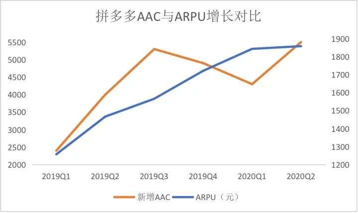 对于这次ARPU增长乏力,拼多多给出的解释是由于当季AAC的大幅增长,意思是基数变大拉低了ARPU。