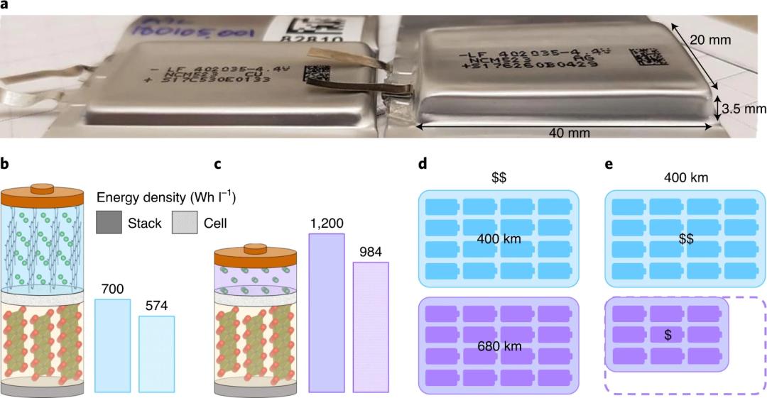 能量密度是实现更长驾驶里程的关键。目前,特斯拉Model 3使用的松下「2170」电池的能量密度约为260Wh/kg,400Wh/kg意味着比目前的能量密度提高50%。如此高的能量密度还能使电动汽车的行驶里程增加约280公里。