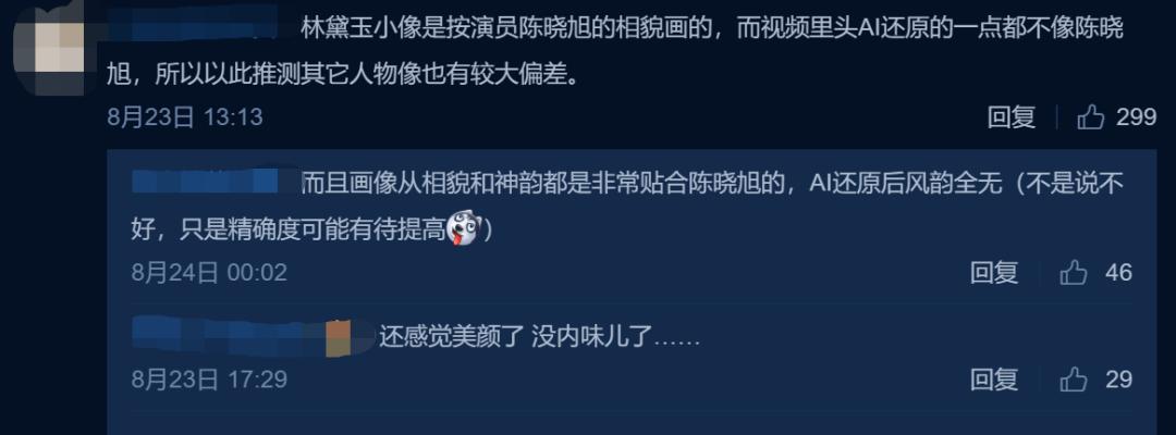不过,眼尖的网友也发现,AI还原的人物存在较大的偏差,“感觉美颜了,没内味儿了”。