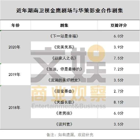 这已经不是华策今年首次入驻湖南卫视金鹰剧场,在《以家人之名》前,湖南卫视已经陆续播出了两部由华策出品的剧集,分别为《下一站是幸福》和《完美关系》,这两部剧在播出时同样面临着口碑与收视二选一的问题。