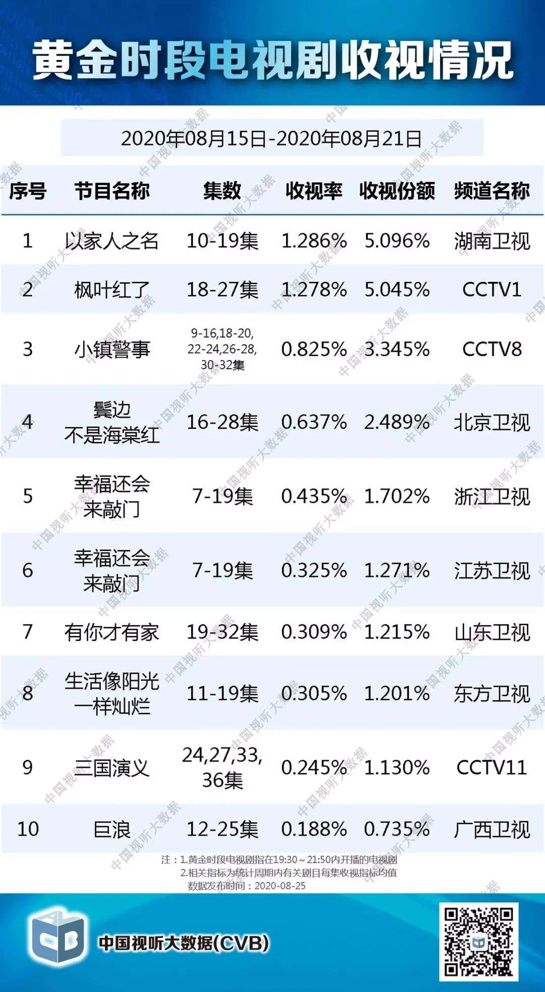 在上星平台湖南卫视,该剧播出首周,CSM59城平均收视率达2.65,平均市场份额达9.85%,在索福瑞全国网、全国城域、59城、欢网、酷云、尼尔森网联六网收视登顶。在中国视听大数据之中,上周《以家人之名》凭借每集平均收视率1.286%的优异表现,位列黄金时段电视剧单频道收视率第1,观众回看度和忠实度普遍较高。整体受众群,基本上承接了前一段时间东方卫视《三十而已》的观众。