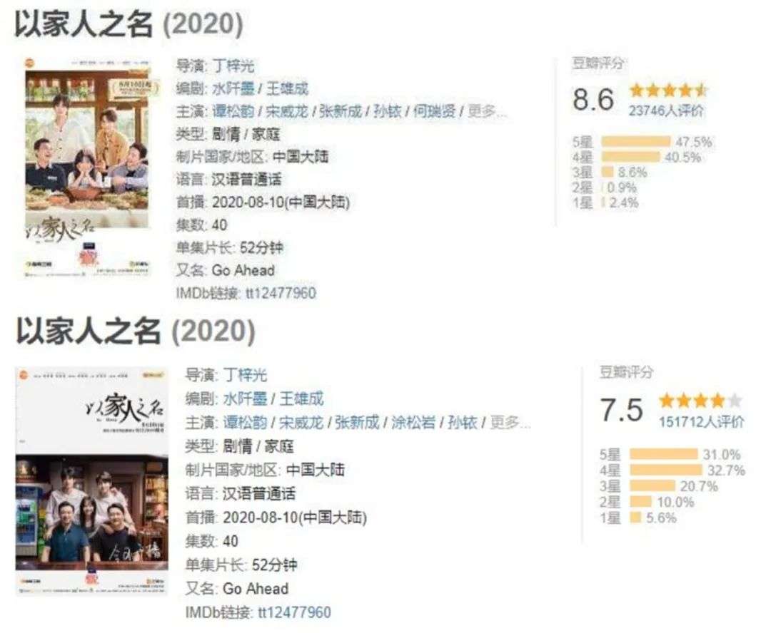 近日,由华策影业等出品的青春成长治愈剧《以家人之名》引发热议,剧集口碑高开低走,从开播时的豆瓣8.6分,一路下滑至7.5分,网友形象地称这是在“以家人之名,行苟且之事”。