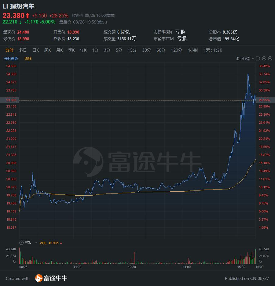 理想汽车大涨28%,创上市以来新高,市值逼近200亿美元