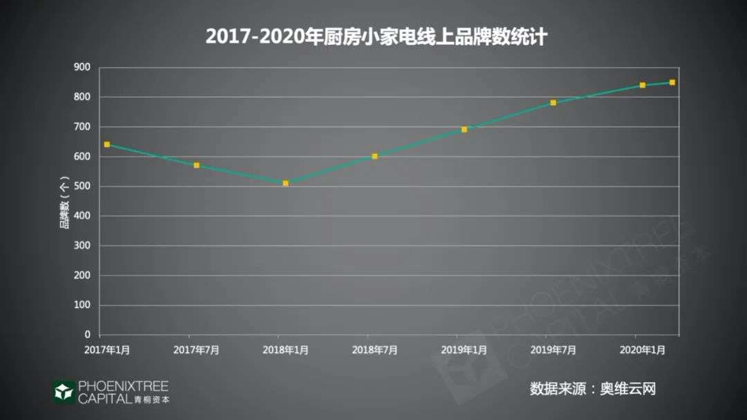 厨房小家电玩家加速入局,来自奥维云网数据,2019年1月-2020年3月,厨房小家电的线上品牌数增长约100个,而2017-2019年,两年间仅增长了约60个。另外,一些生活用品巨头也开始布局小家电,今年7月,韩国乐扣乐扣在中国发布10款小家电新品,正式进军小家电领域。