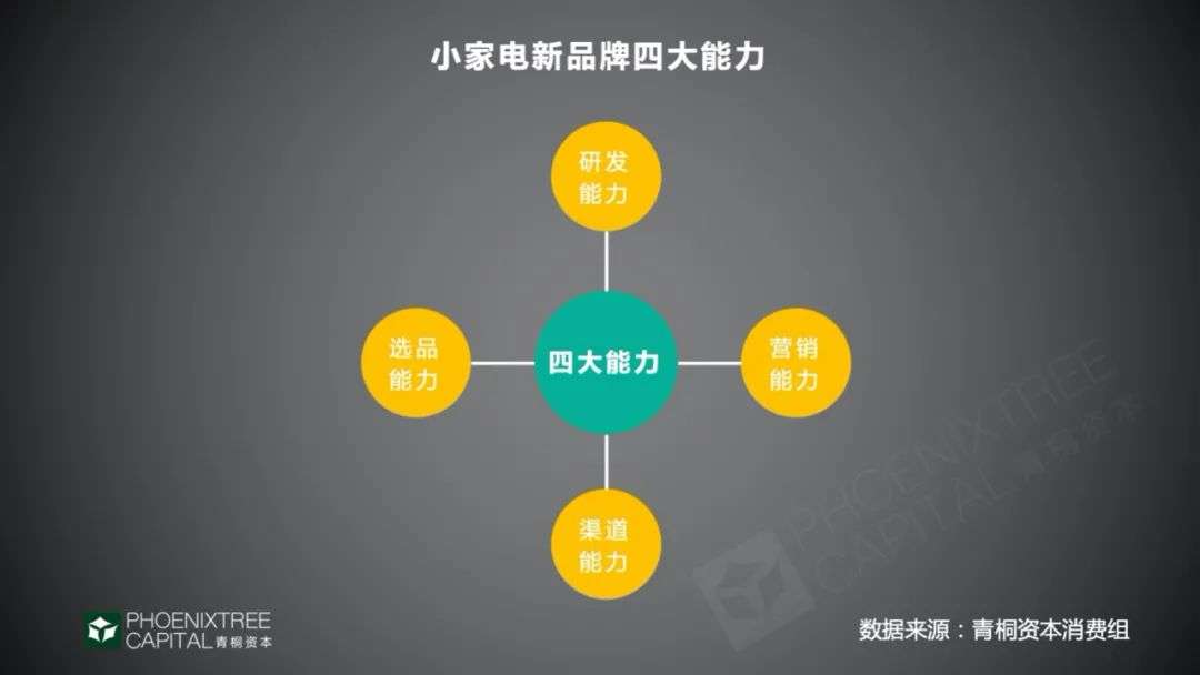 小家电备受资本青睐,资本主要看中其哪些因素?新品牌为何能脱颖而出?青桐资本与100+大消费领域投资人交流总结发现,其投资逻辑主要考量4大能力:研发、选品、营销、渠道,及供应链的整合能力。