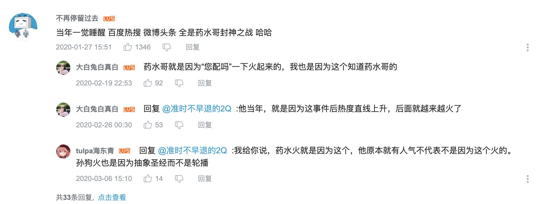 B站药水哥视频下的评论